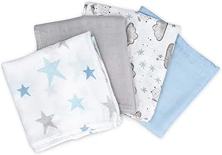Navaris Lot 4x Couverture Bambou Bébé - Serviette d'Emmaillotage 80x80 cm pour Nouveau-Né - Extra-Doux Nettoyage Facile