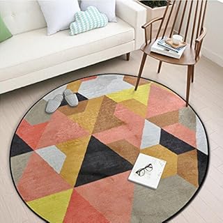 Tapis Salon Carpette Rond, Zone Tapis de Sol Souple Moquette Anti-glissant Carpette Motifs Géométriques Salle à Manger Tapis de Bain Salon Chambre Couverture Carpet Mats Rug (Diamètre 80cm)
