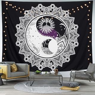 Danolt Tenture murale Soleil et Lune Tapisserie Tarot Psychédélique Tapisserie Mandala Noir Tapisserie murale pour chambre à coucher, salon, dortoir, décoration de la maison - 149,9 cm/129,5 cm