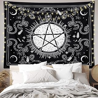 Dremisland Tapisserie Murale Psychédélique Pentagramme Tenture Murale tapisserie Lune Trippy tapisseries Noir et Blanc Tapis Mural pour Salon Chambre Décor à la Maison (A, M/130x150cm)