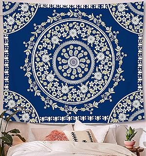 Zodight Tenture Murale Bleu, Tapisserie Murales Mandala Tapisseries Psychédélique Bohémien, Tapisserie Indien avec Motif Floral pour Chambre, Salon, Dortoir, Couvre-lit