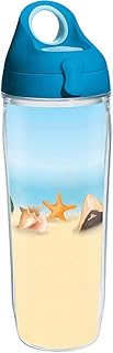 Tervis 1284943 Shells on the Beach Tumbler with Wrap and Turquoise Lid 24oz Water Bottle, Clear