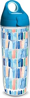 Tervis 1335154 Yao Cheng - Vertical Stripes Insulated Tumbler with Wrap and Turquoise Lid, 24oz Water Bottle, Clear